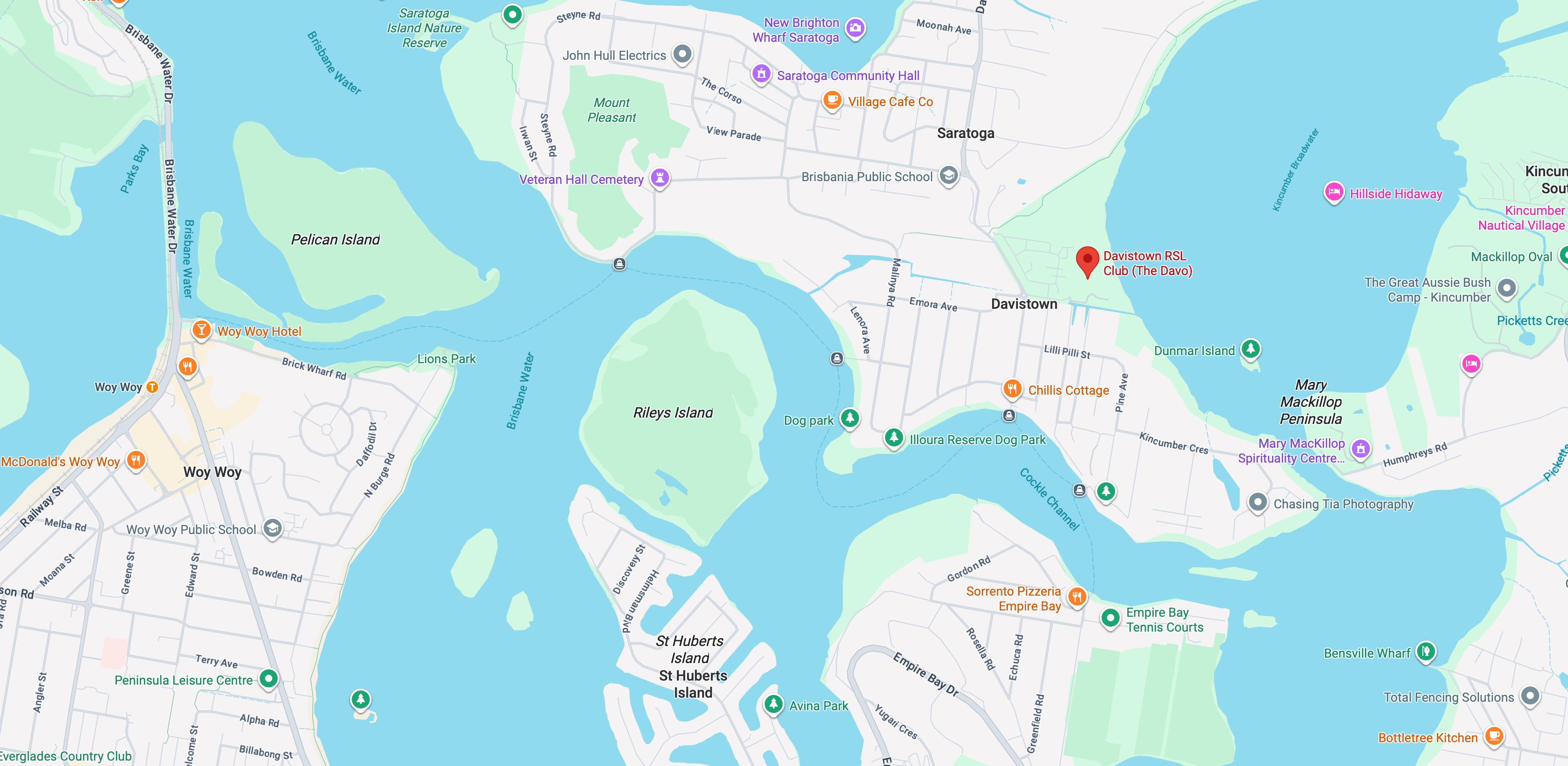 Davistown RSL is an approximately 10 minute walk from the ferry terminal.