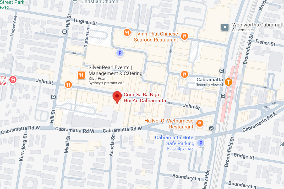 Com Ga Ba Nga Hoi An is a short 5 minute walk from Cabramatta Station (see map below).